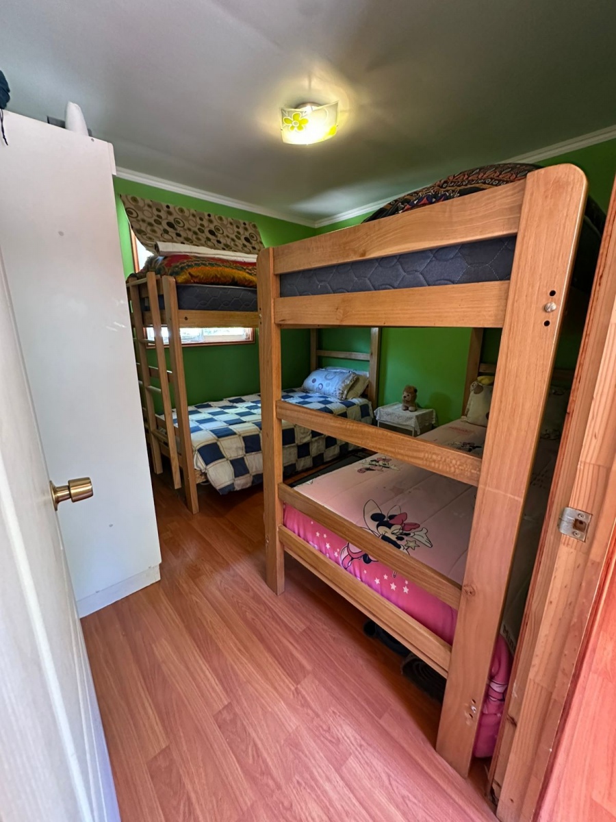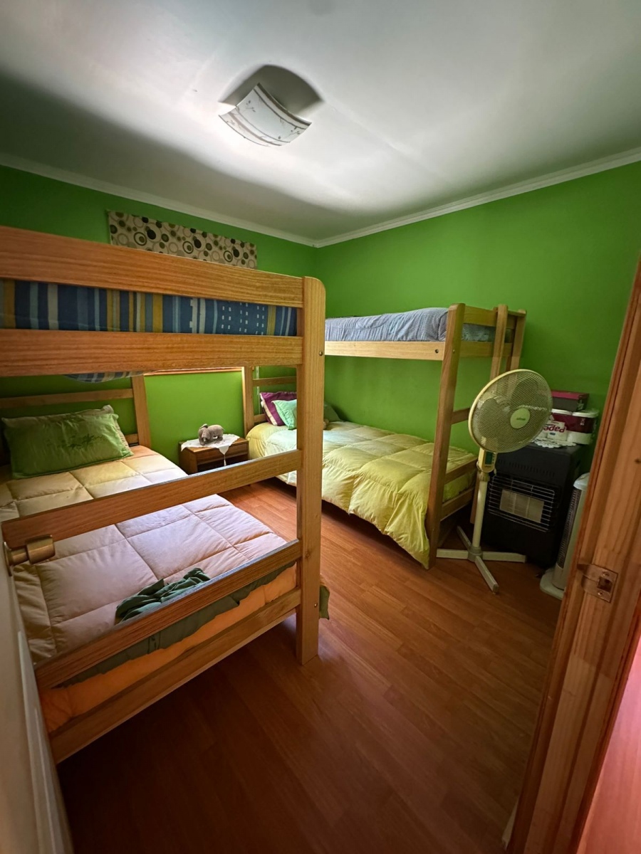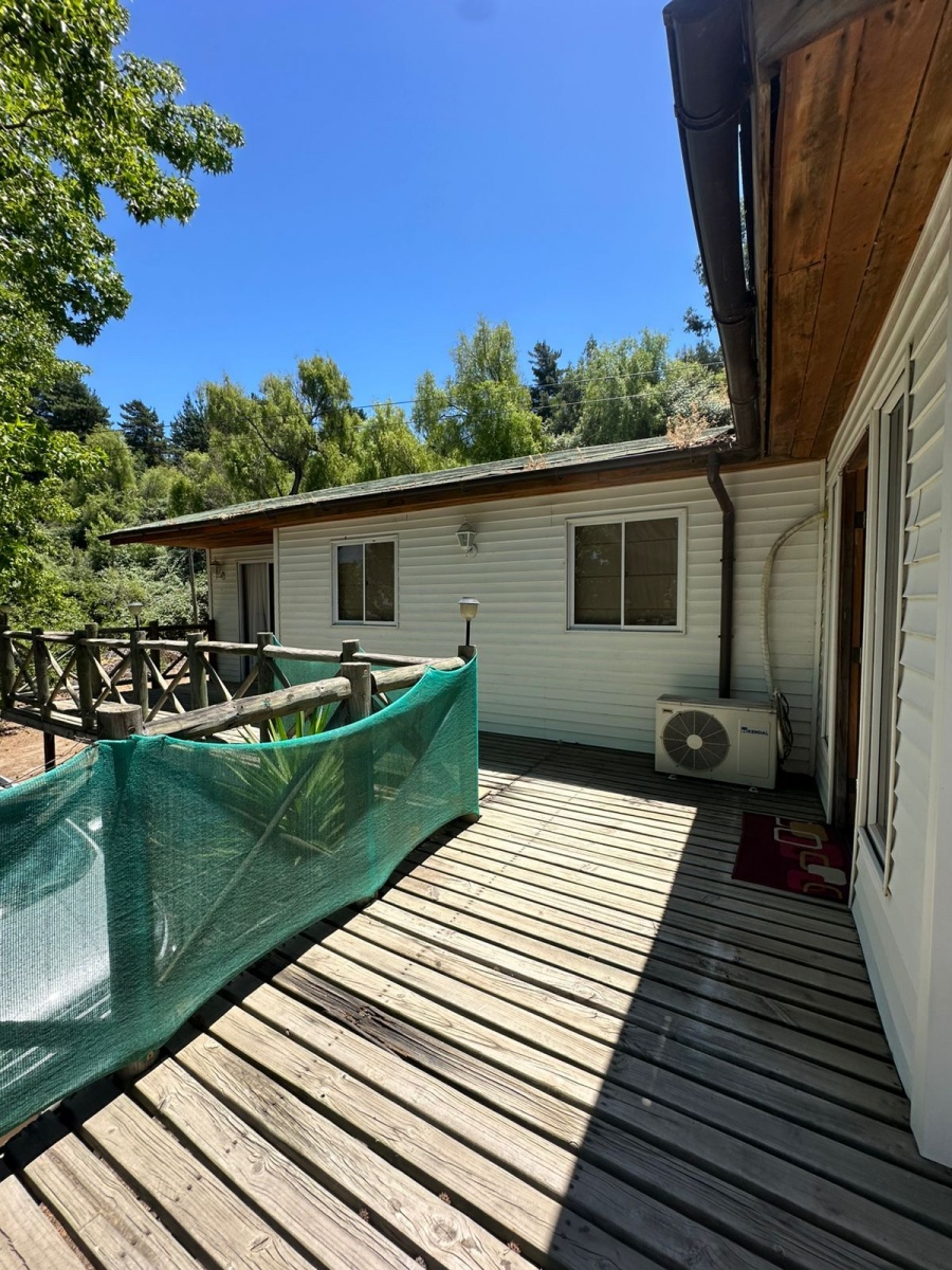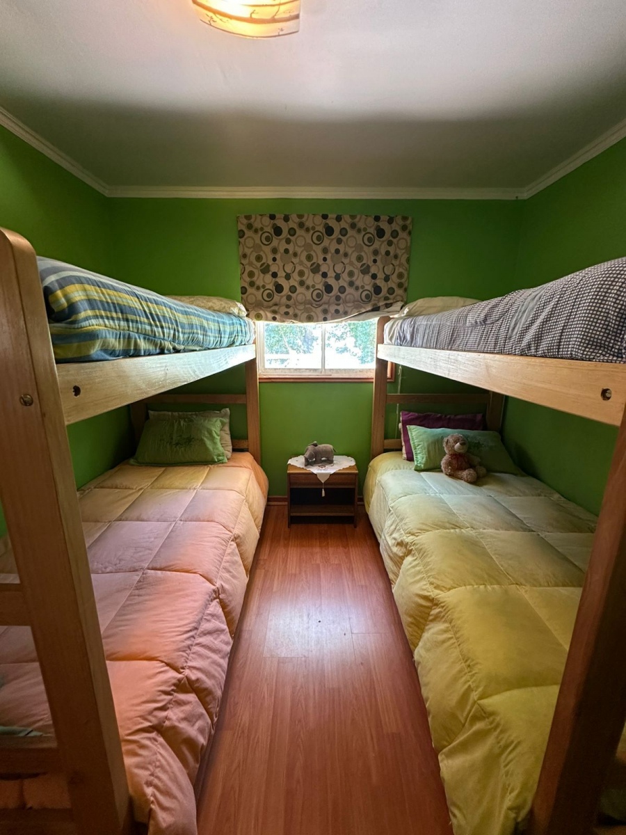 La vivienda cuenta con 4 dormitorios(2 de ellas son matrimoniales y las otras 2 con camarotes dobles), 2 baños, cocina y living comedor de gran tamaño, estacionamiento y un un patio amplio, con terraza vista al lago en el sector frontal de la casa, internet, fosa séptica, electricidad(CGE) y red de agua potable, ideal para reuniones familiares o actividades al aire libre.